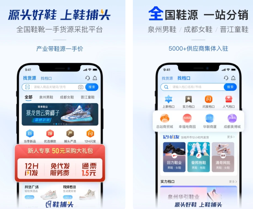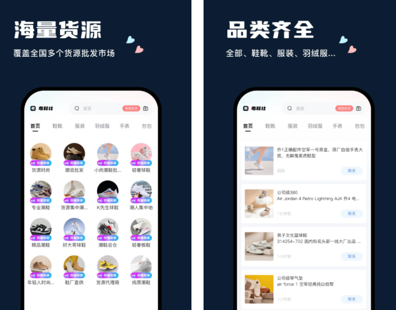 汇聚全国一手鞋子货源,男鞋、女鞋以及童鞋分类都有,一件就可以代发。官方还有一键12小时速发的功能,新品球鞋快速选,无论你是个人买鞋,还是做鞋类电商都适合。
