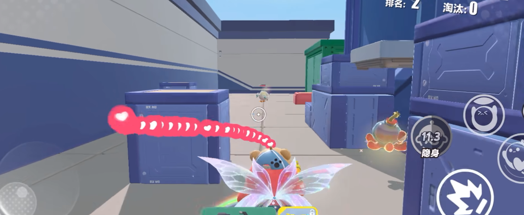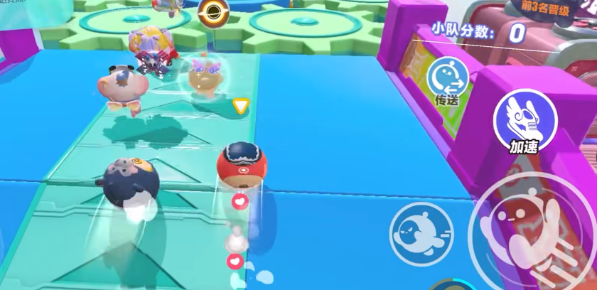 躲避蓝色风扇过了起点后你就会进入一个弯道,这里有很多蓝色的风扇它们会不断地旋转,如果你碰到了就会被吹飞。所以你要灵活地移动尽量避开它们。不过你也可以利用它们,如果你发现有一个风扇正好对着你前面的蛋仔,你可以故意撞上它让它把你的对手吹走。这样你就可以减少竞争者提高通关的几率。捡拾道具在跳上一个平台后,你会看到一个台阶上有一个道具它是一个红色的炸弹,你可以捡起来然后按下屏幕上的按钮,就可以把它扔出去炸掉你周围的蛋仔。