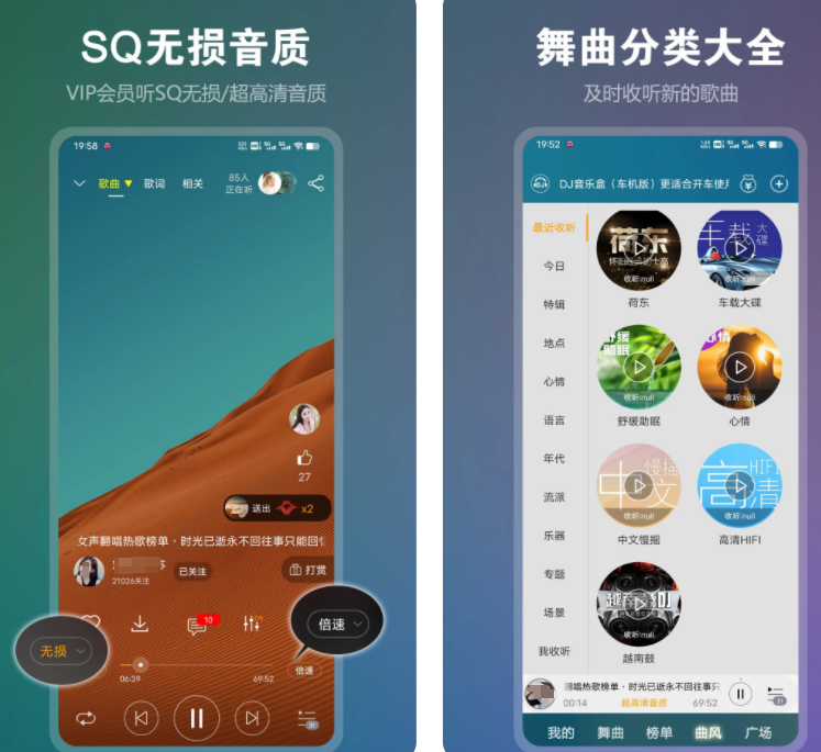 这里有保真无损音质播放的功能,通过连接音响可以享受Dj音乐鼓动节奏,各种劲爆重低音、喊麦电音、短视频平台同款嗨歌,很适合车载音乐。