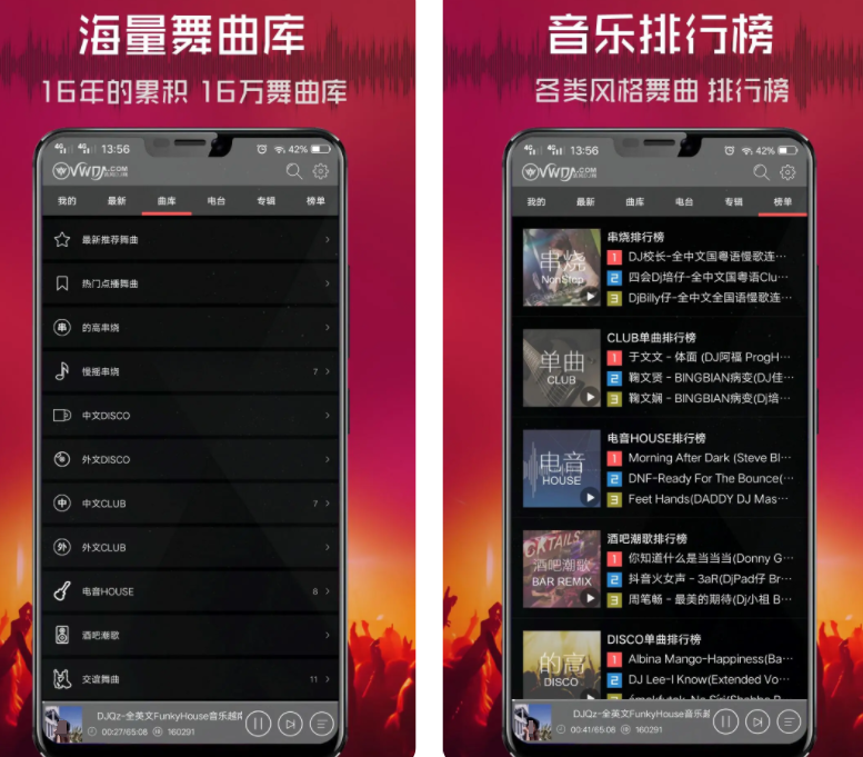 这款经营了16年的音乐软件,每天发布潮流dj热歌舞曲,高音质在线试听,还有多种风格舞曲排行榜,很适合用来跳街舞、体操、广场舞的朋友,打开一键连播,总有你的爱歌。