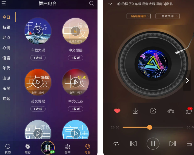 内含多款电音神曲车载串烧歌,可创建个人听歌库,一键收藏方便整理你喜欢的dj歌。而且软件有不定期举办的串烧听歌大赛,推荐给喜欢听流行dj热歌的朋友使用。