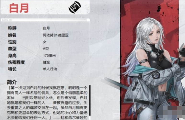 白月:白月是一名重甲机师,使用长柄武器,拥有高级的防御能力和辅助效果。她的技能可以给周围敌人降低攻击力和受伤增加,提高自己和队友的生存能力。她还可以通过位移技能带来控制和aoe伤害,增加战斗的灵活性和火力。白月的优点是全面而均衡,可以适应各种战斗环境和阵容搭配,是一名万金油角色。白月的缺点是没有突出的优势,各方面都不是最强,输出能力中期偏低,更多的是起到辅助和抗伤害的作用。