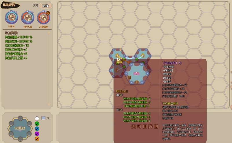 但是灵气不足也是会导致阵法后力不足的,在设置好了阵枢之后大家在上面就需要搭配阵眼,这个位置其实在阵法当中是非常重要的,如果大家在上面搭配好阵眼的话,其实是可以根据五行克制的效果来进行搭配的,在阵法全面都组建好之后大家在上面就可以启动阵法看看看效果啦。