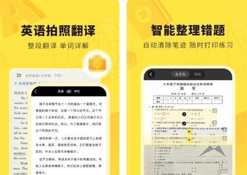 软件为大家提供了小学、大学等全科的辅导和解析,里面的内容丰富,还有作业的检查和智能化的错题整体,提供了拍照翻译和家长辅导等多种不同的功能,更是有着一键去除手写笔迹的功能带给各位。
