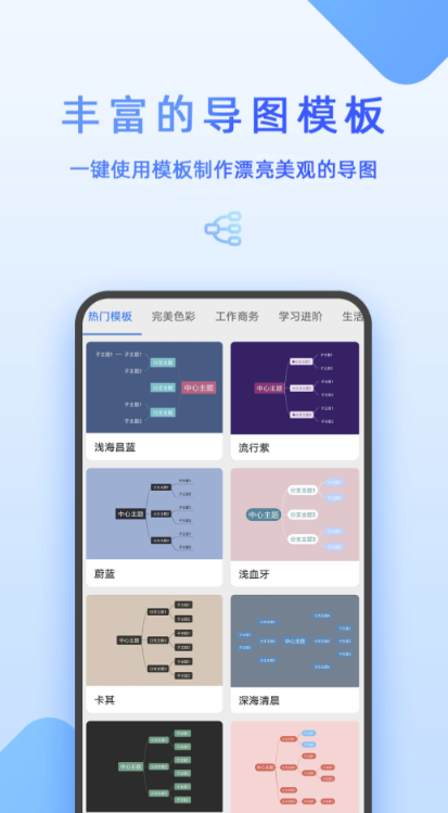 这款软件的风格十分简约大气,不需要那么多繁琐的操作,其中的导航划分也是十分的清晰,多种样式导图根据大家的需求进行筛选,同步云端的功能给大家的工作带来很多的方便。