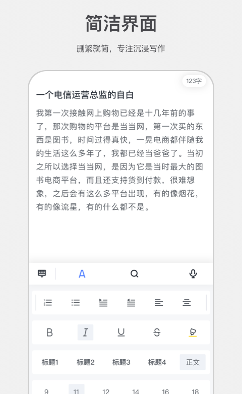 记录每一刻的创作灵感,编辑、作家和自媒体人士都可以使用,可以创作多种文体格式,多个设备可在同一时间登录,语音写作更节省时间,简单的操作就可以分享到其他的平台。