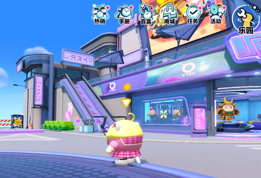 第二个秘密基地是盲盒的内部。玩家们找到蛋仔岛的摇摇车店门口,先从旁边的楼梯上来到飞机这里,从飞机旁边的垃圾桶跳上盲盒店的墙壁外侧,然后贴着墙壁慢慢移动,就可以看到透明的墙壁玻璃,然后滑进去就可以来到第二个基地了。