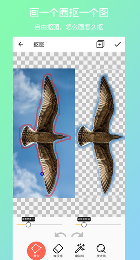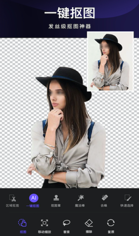 这款软件不仅是带有抠图功能,更是可以帮助我们快速将图片中的人物或者是物体识别提取出来,当然也可以利用魔法橡皮擦一键将复杂的背景去掉了。