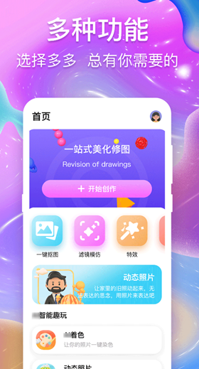 其实这是一款以美颜为主要功能的手机相机应用,但是本身也带有强大的图片后期处理工具,而且还支持一键抠图功能。 初次之外还能够使用这款软件为图片添加不同的贴纸、滤镜或者是特效,还是很方便的。