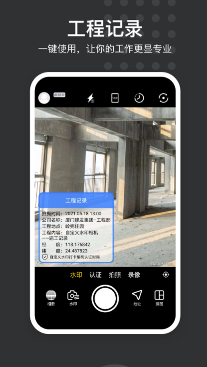自动添加水印的一款手机应用相机软件,这里的设定十分的方便,操作起来也很是简单,各种水印的内容都是可以按照自己喜欢的形式设定,随时随地添加不会有任何的限制。