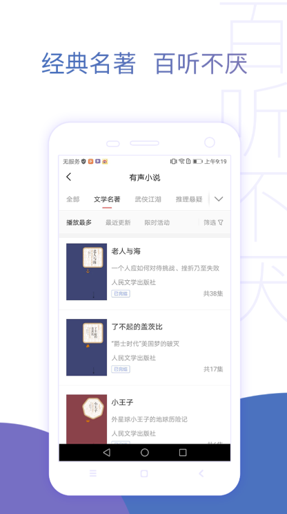 这里有很多励志的有声读物,还有各种关于历史的书籍,对于这方面有兴趣爱好的小伙伴来说是一件非常开心的事情,带上耳机就可以尽情的畅听,不会任何的打扰和限制。