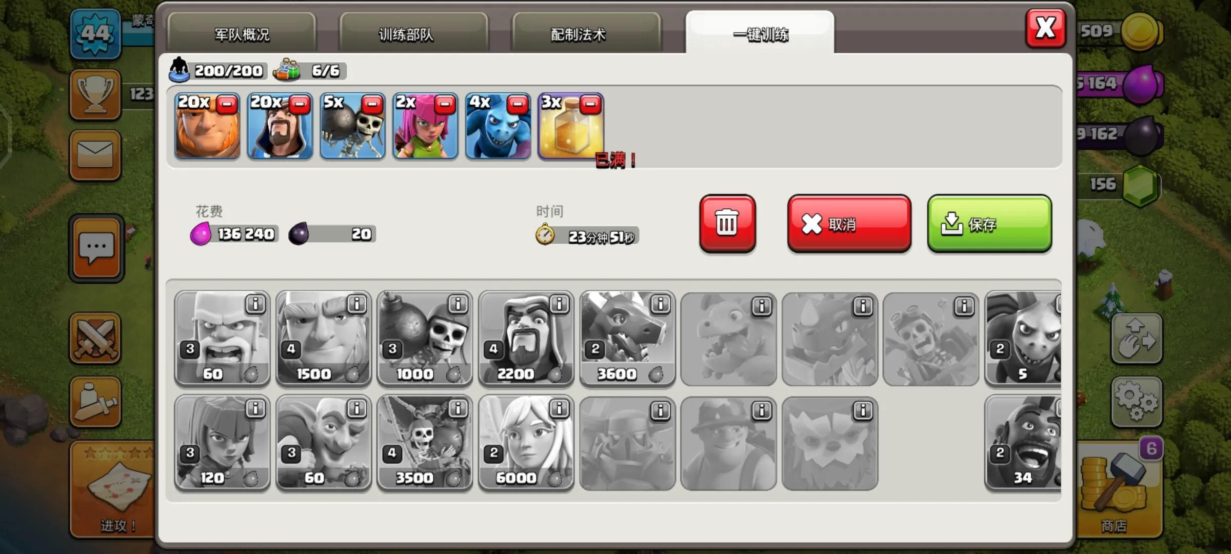 需要注意的点是,第一杀援,打部落战时可以适当调整训兵,因为野猪和气球的首选目标都是防御建筑。