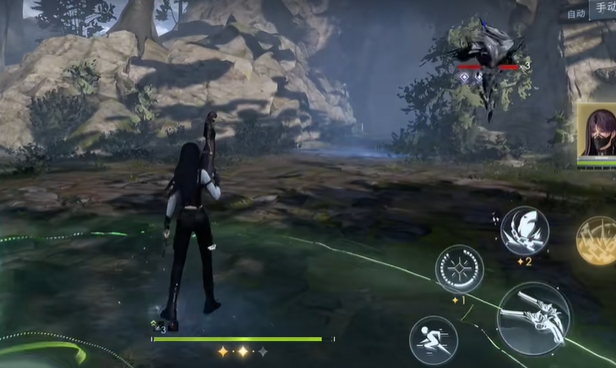 通过普通攻击和位移来搭配使用,连续点击的话,是可以触发特殊的攻击效果的,通过右侧的技能搭配来进行释放技能,每次释放技能都可以获得预定的共鸣值,数值满了后,是可以和上场的男主使用出共鸣技能的!