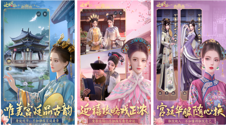 本作是款非常注重剧情的3D角色扮演类换装游戏,浓郁的宫廷场景和复古风格的角色形象让人叹为观止,唯美的背景塑造和多样性的宫廷服饰让游戏的观赏性大大提升,跌宕的剧情故事和刺激的宫斗过程让人大呼过瘾,精致考究的立绘技术和落落大方的角色造型也让游戏的真实性更胜一筹。