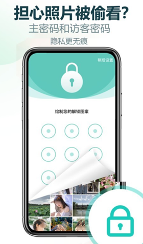 对手机中的照片和相册形成保护,可以一键上锁,需要绘制图案或者是输入密码之后才可以读取查看,自身带有强大的编辑和管理功能,支持搜索主体快速找到图片。