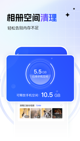可以智能清理手机上的无用图片或者是重复照片,帮助我们节省手机空间。支持相册同步云端,加入了智能管理模块,搜素人物或者是物体就能够快速筛选支持预览。