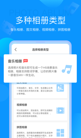 提供了多种不同的相册类型可以选择,不管是音乐、人物还是旅游都可以轻松找到并使用,软件的操作也很简单,很多都是能够一键或者是智能完成的,便于我们进行修改和编辑。