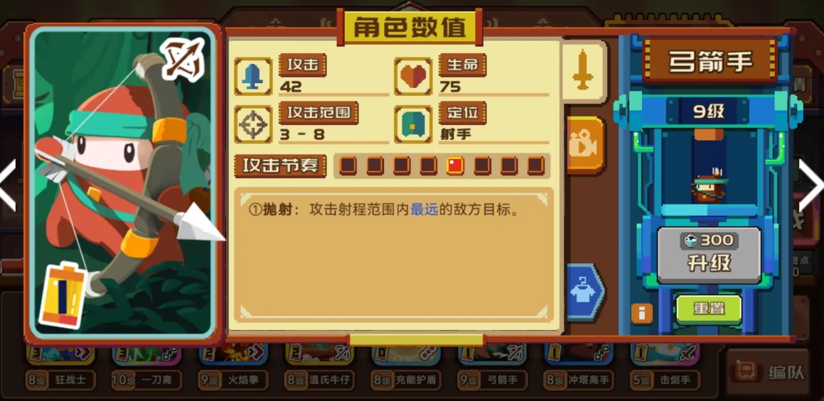 弓箭手在后排的作用也是很强的,它是后排的主力输出,不仅攻击力和攻击范围出众,而且技能所提供的“抛射”还能直接锁定射程内最远的目标进行攻击,因此非常容易就能让你清理掉对手窝藏在后方的核心主力。
