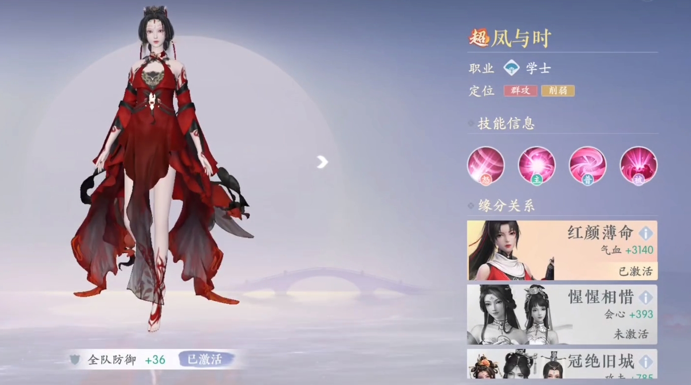 凤与时:这是一个打持久战非常厉害的群攻型角色,她的四个技能都有着不错的数值加成,而且范围普遍都很大,其中最强的还要当属怒气技能,使用后不仅可以同时伤害四名敌人,并且还有几率能够挂上灼烧,之后的每回合都会持续进行扣血,并且这个扣血的数额并不固定,而是跟敌人的最大生命值挂钩,所以敌人血越多受的伤害就越高。