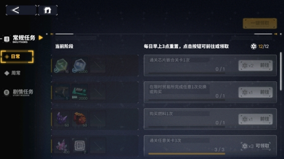 在完成一些特定的主线任务之后,就可以有效得到丰厚的奖励,里面还会包括各种不一样的资源。在游戏里面会有许多的日常任务,又或者是周长任务,在达到要求之后就能够顺利的通关领取。