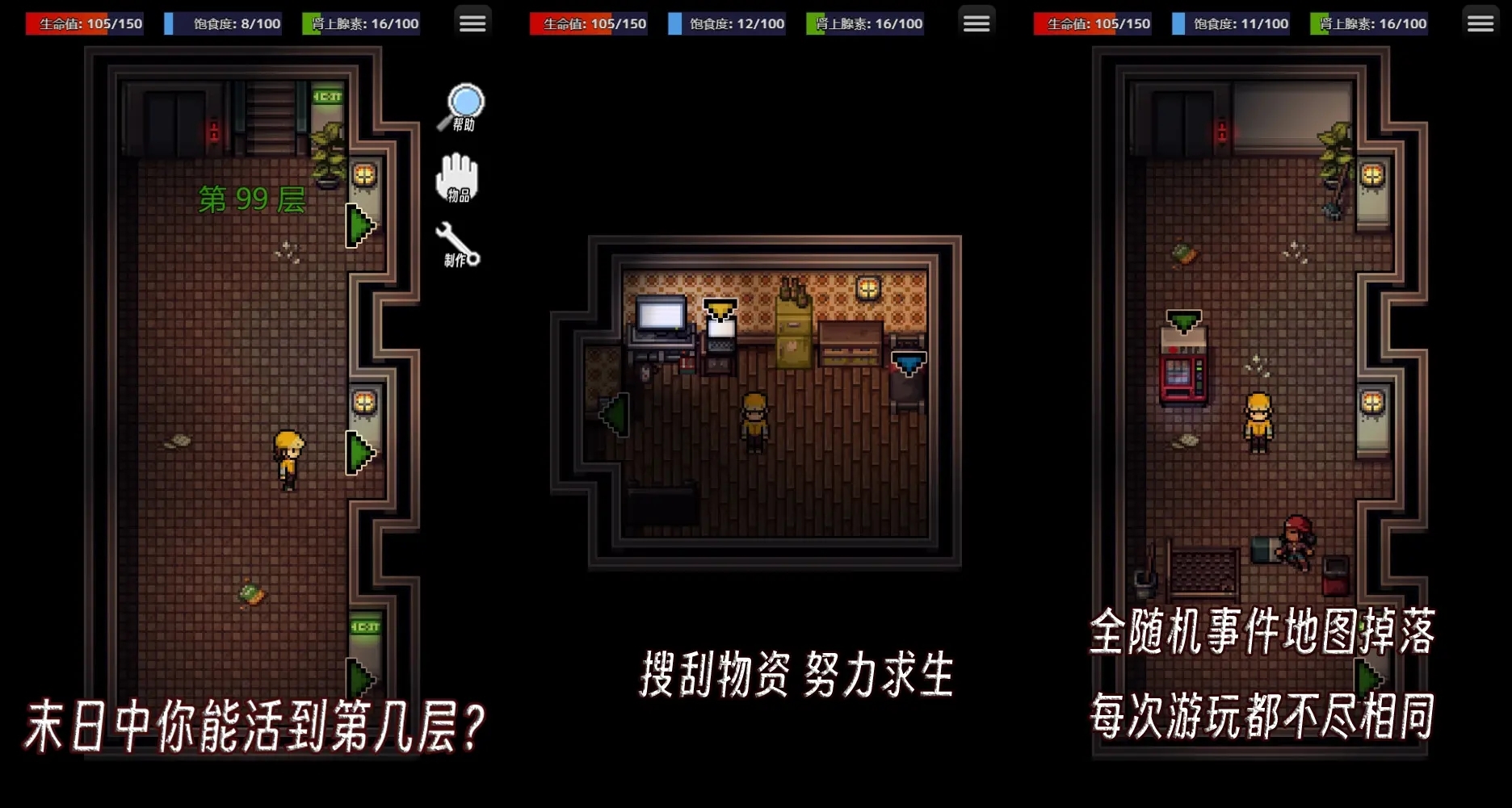 《生存之志》以玩家扮演的外卖员为主角,在工作途中遭遇了末日降临,并被困在一栋高达百层的建筑里,需要一层层地往下小心探索,才能离开这栋充满着危机大楼。在这过程里,玩家需要利用一切自己能拿到的道具和资源,肃清自己逃生路上所遇到的一切敌人,并收集食物度过一个个危险夜晚,在玩法上还是挺有意思的,而且氛围也相当的逼真。