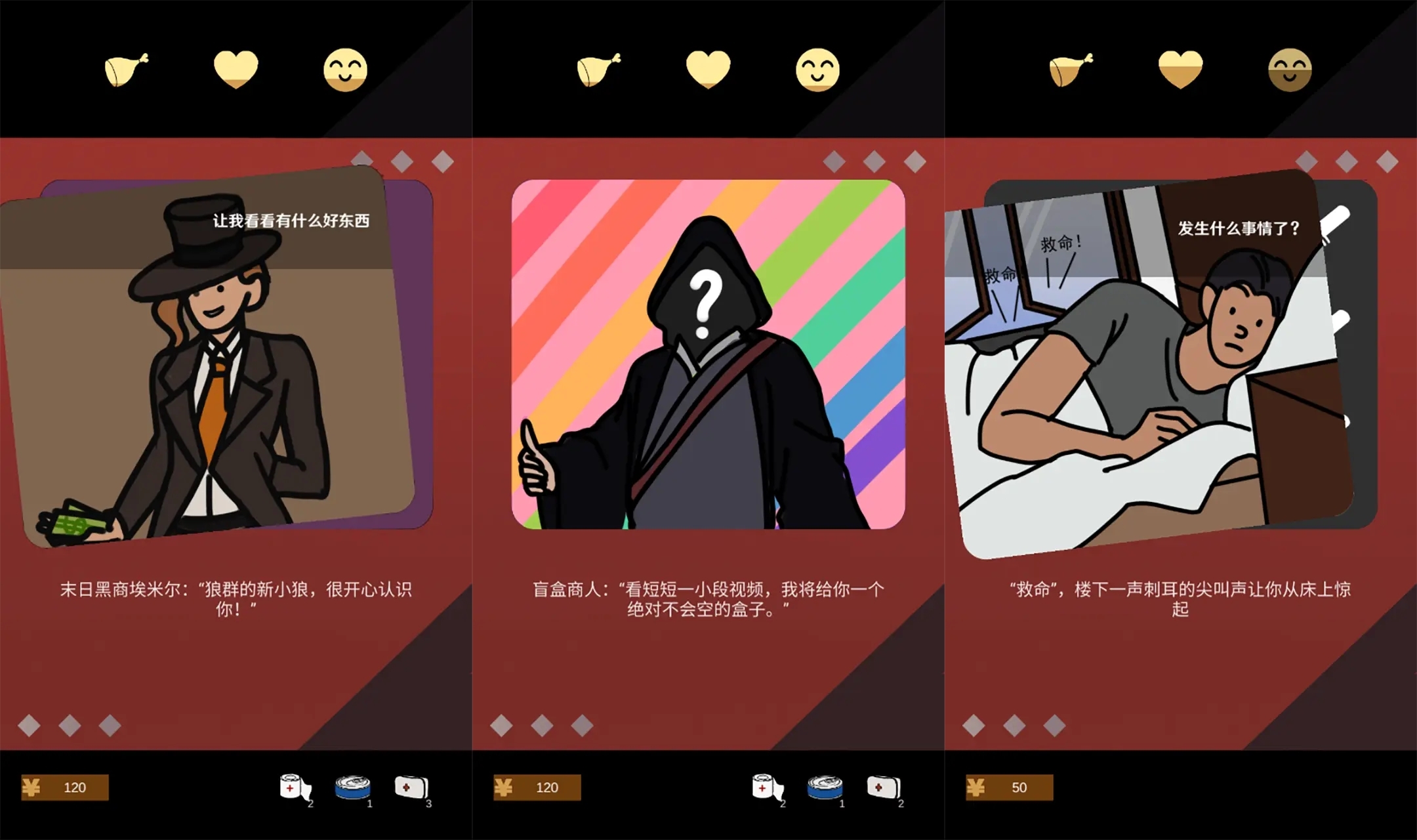 《活路》是一款玩法较为独特且画风相当新奇的一款生存类作品,玩家将在末日的早餐醒来,迎接已经发生变化了的世界,并通过各种各样的选择,好让自己尽可能地在末日里完成生存。游戏基本上以文字选择为主,每次玩家完成选择后都会有较为详细的后续,同时也没有太多强制玩家走剧情的限制,可让玩家自由进行发挥,去创造属于自己的冒险结局。