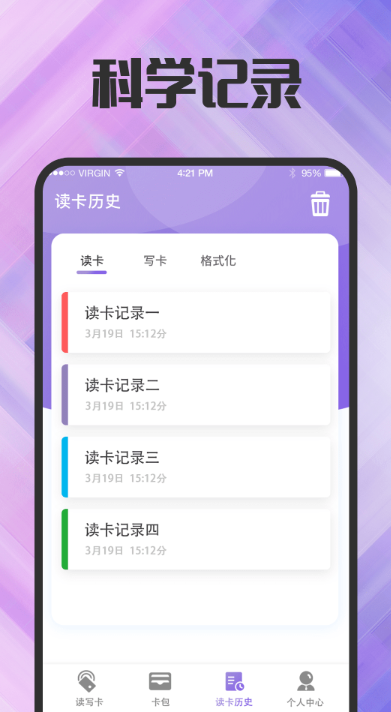 旨在为门禁卡的简单备份提供一种简单的方法,用户只需通过移动电话扫一次,就能把相关的数据保存到 APP里,就可以对磁卡进行数字化备份。这样既方便了使用者,又避免了卡片遗失、损毁等问题。除了备份功能外,该 APP还支持共享,允许用户共享已备份的权限,从而更加灵活地对权限进行管理。