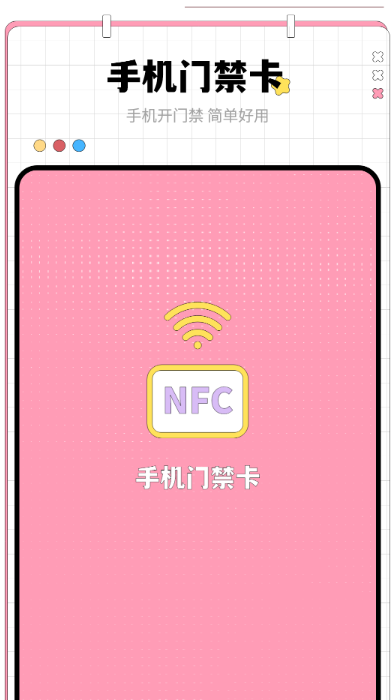 NFC门禁卡是一种以 NFC为核心的门禁系统。利用内置于移动电话中的 NFC芯片,使使用者能够模仿门卡的讯号,达到刷卡开门的目的。这款无需使用实物卡的解决方法,在打开门时更加方便快捷,更加便于携带。NFC技术支持多个门禁系统兼容,覆盖范围大,适合各种应用场合。只要把手机放到刷卡机旁边,就可以轻松地打开,非常方便。