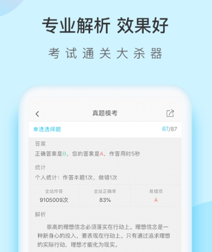 它为大家带来了免费的题库和题型,用户到时候可根据自身的需要来合理的选择,除了具备专业化的解析内容外,使用起来的效果也非常的不错,对于那些需要应对考试的朋友而言,还是能带来有效帮助的。