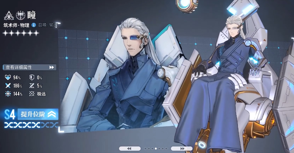 瞳:这是游戏中留有白色长发的一个男性角色,本身很有身居高位,运筹帷幄的气质,他的技能也都充分彰显了这种气质的特色,一技能“精确制导”可以对400半径范围内的敌人进行轰炸,轰炸范围内的敌人会随机收到物理伤害,并且每场可以触发五次,每次轰炸都有200%的物伤,此外,范围内的敌方单位越多,那么单回合能够轰炸的次数也就越多。