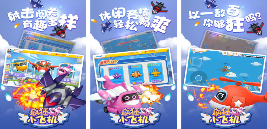 《疯狂小飞机》是一款画风非常卡通的竞技飞机游戏,这款游戏为玩家提供了大乱斗、无尽模式和排位赛三种不同的游玩模式,而且还有很多长相或可爱或酷炫的飞机可以解锁,只需要获取足够的金币就可以。游戏的战斗场景也是又萌趣又帅气的,只要进入游戏中就能感受到满满的王牌飞行员体验。