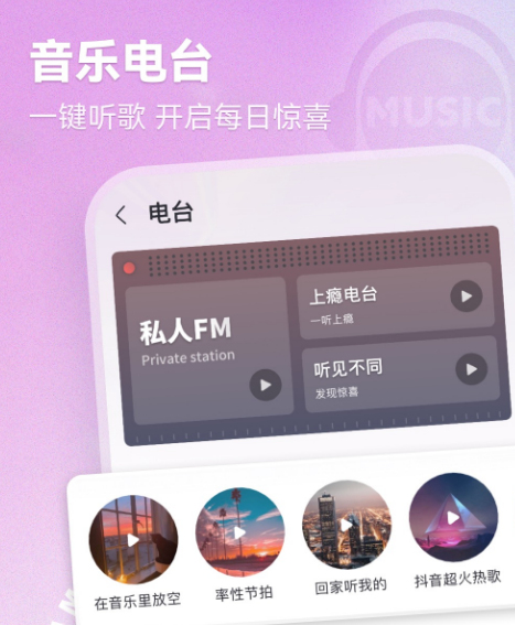 这是一款为广大音乐爱好人群打造的听歌软件,不仅可听到各种有趣精彩的歌曲,还可分享一些精彩有趣的音乐内容。