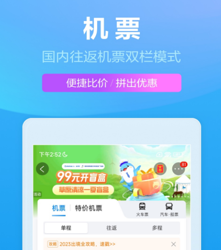 经常喜欢旅游的人群,对这款软件并不陌生,能够提供各种服务,让用户随时来一场说走就走的旅行,包括酒店预定以及机票、车票的购买,提供了超过2万条航线以及200个国家和5000多个城市的服务,在节假日来临前,提前到该软件上抢购机票、火车票还能享受一些优惠,不用担心因买不到票而耽误出行。