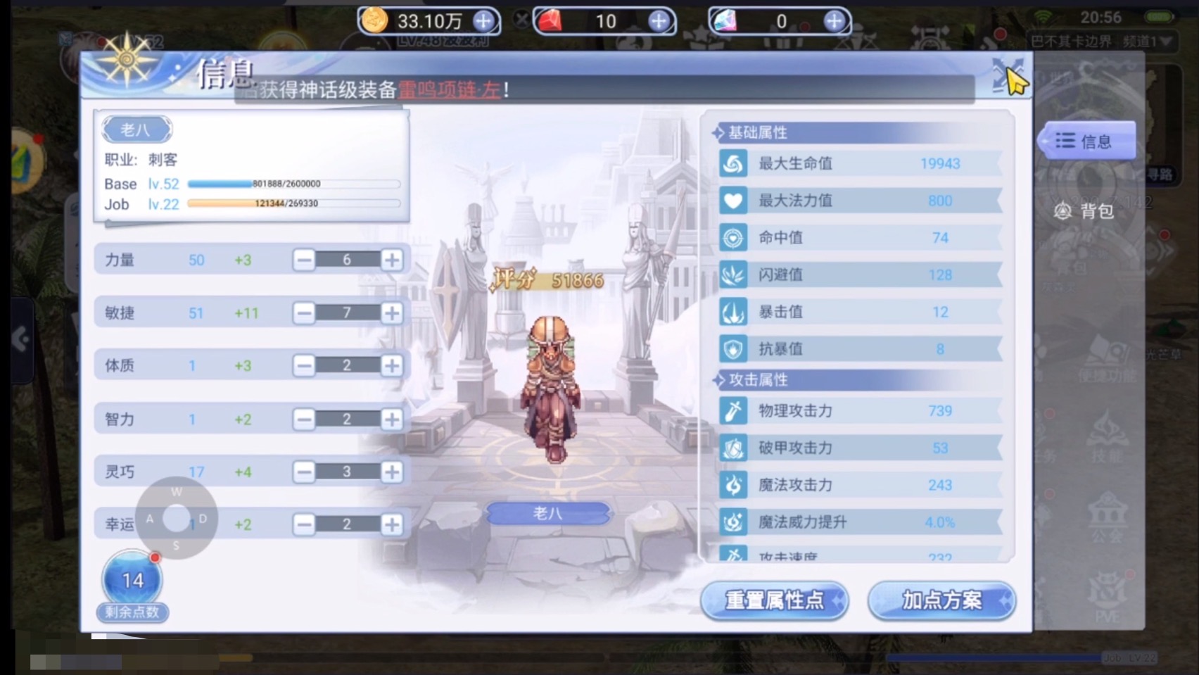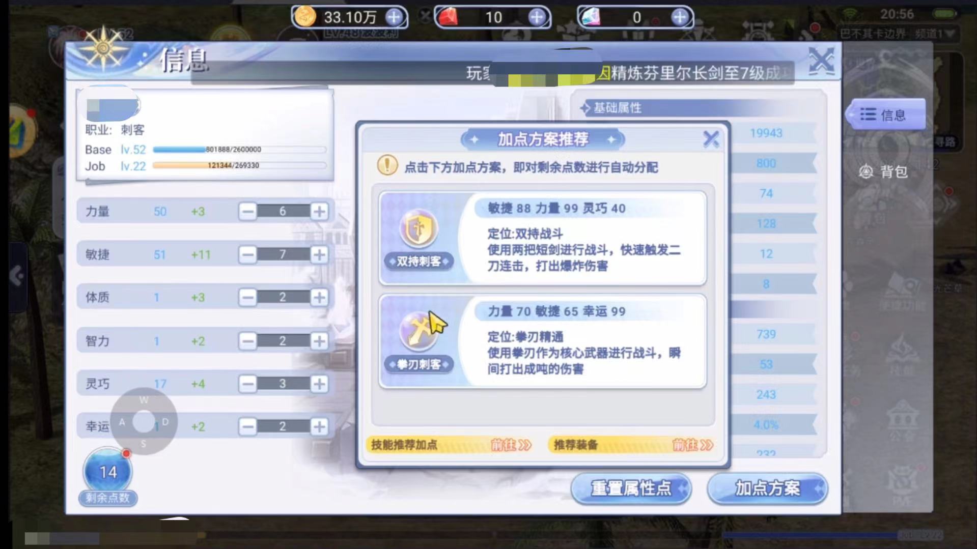 盗贼我们主攻的就是力量和敏捷,因此在进行盗贼的培养时,加点也是重点加着两个属性,加力量可以提高它的攻击力,给敏捷加点可以提升攻击速度,另外还可以加灵巧度,和幸运度,这两个可以提高盗贼的闪避值也就是防御力,但是大部分的属性值建议还是加到力量或敏捷这两个属性。