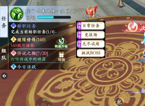 大家可以去完成游戏中的 【每日任务】,每日任务的玩法非常的简单,只需要去挑战一些世界boss和一些基础的强化玩法就可以得到大量的经验了!还有一个就是游戏中的竞技玩法,这个竞技玩法每天只能挑战三次,但是获得的经验是比日常任务要多很多!