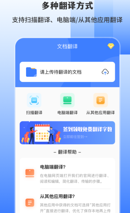 该软件支持多种英文翻译方式,其中就包括扫描翻译,还支持从电脑端或其他应用翻译,在文档翻译时还能保留原文格式,翻译更加顺畅。