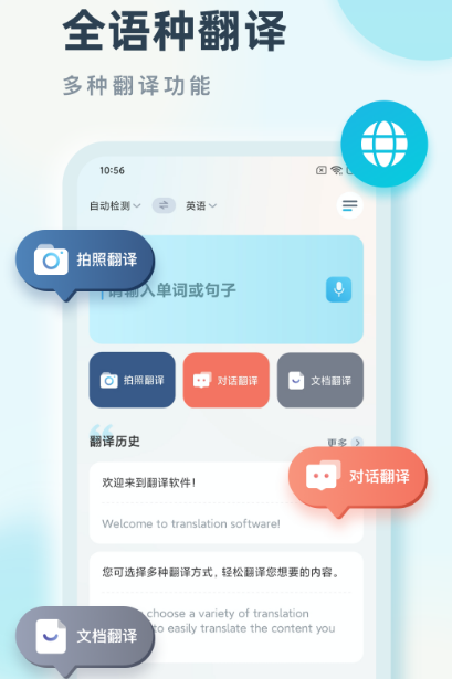 在翻译各种语言的时候,该软件的功能就是多种翻译功能以及全语种翻译,不管是在开会时还是在旅游的过程当中,不了解对方说的是什么都可利用对话翻译的方式让沟通无障碍。