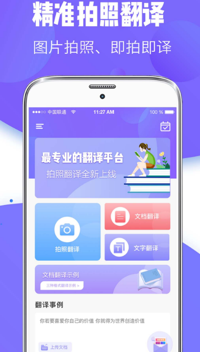 专业中英文翻译软件,既支持口语翻译,也支持拍照翻译,甚至是文本翻译,具备实用的功能及简洁的界面,满足用户生活工作学习的翻译需求。