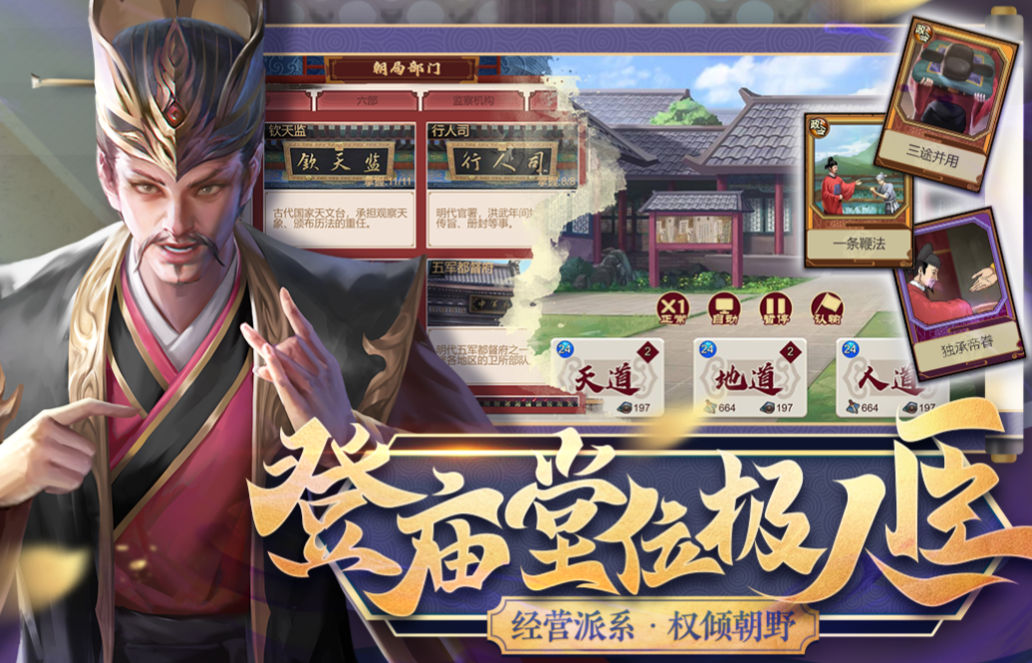 本作是款真实模拟在古代当官的历史题材成长类游戏,真实的历史剧情与养成类的游戏内容让人乐在其中,玩家可以从古代的芝麻官开启自己的仕途之旅,通过不断升官进爵让自己拥有更多的权利。这款古风养成类游戏剧情饱满且背景很复古,精致的角色立绘和良心的服化道让这款养成游戏脱颖而出。