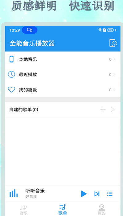 功能强大,操作简单的音乐播放器,致感谢您能够快速识别本地音乐播放器,并智能下载专辑歌曲播放器精致小巧操作简单又便捷。