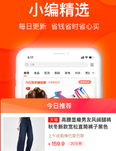 其中的服装鞋包全部都是白菜价,对于众多喜欢网购的小伙伴来说,简直就是出色的省钱神器,对接天猫购物app,致力于致力于为用户提供适合又优质的低价商品大牌优惠券,实时领取笔到天猫直接买更加便宜,另外每天都可以获得0元抢购的好机会。