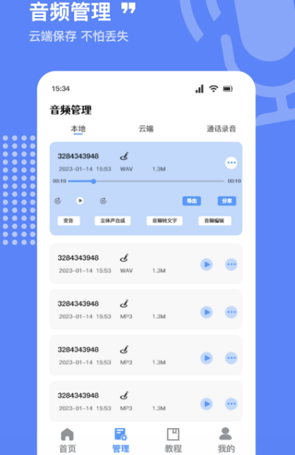 如果在现实生活当中有录音方面的需求,或者是在录音的时候想要美化声音,这一个软件就是非常好的选择,能随时随地录音,还有音频降噪处理功能以及智能变音功能。