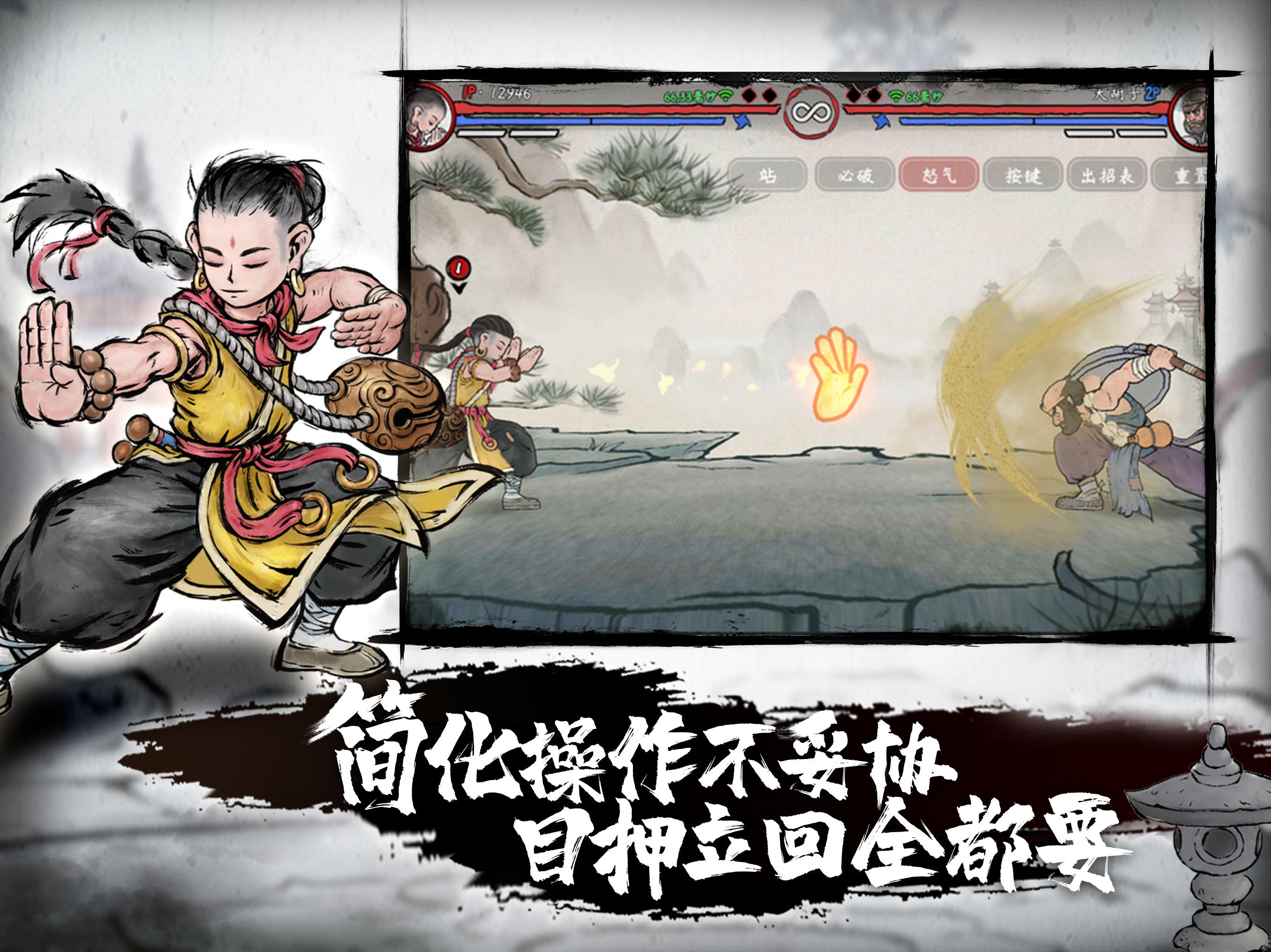 游戏以水墨风格打造,以传统的中国元素为灵感,展现了西游记中的神秘色彩与诗意。孙悟空、牛魔王、白骨精等熟悉的角色将陪伴你战斗,在他们特色鲜明的招式中体验西游记的精髓。挑战的难度可不低,只有熟练掌握每个技巧的时机和方向,才能在激烈的对战中获得胜利。