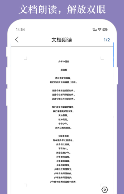想要解放双眼的小伙伴们可以尝试下《朗读大师》,平台中可以将文字转化成语音呈现给大家。对于纸质版的书籍,大家可以拍照识别,平台中会自动识别图中的文字,并且可以朗读出来。