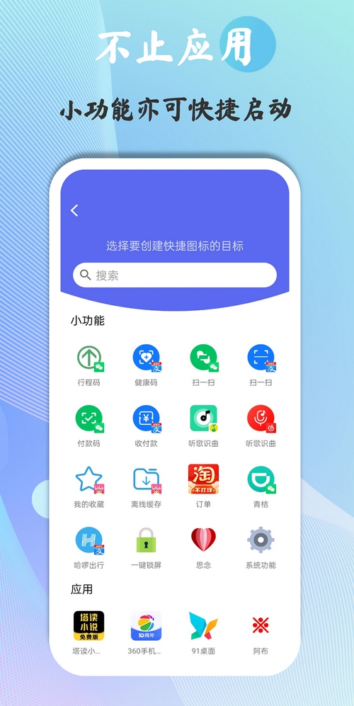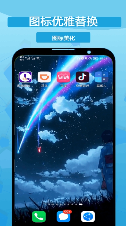 它可以在各种应用程序里面自定义和更改图标和名称。操作简单到不行,速度也快得飞起!不仅如此,这个软件还具备更换壁纸等功能。在类型方面,你可以选择手机里面自带的照片,还可以利用风景、动漫等等来做图标。更有意思的是,你还可以更改app的名字哦!
