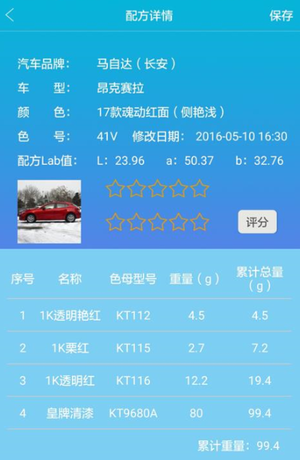 此平台是专业的可以为汽车调色的平台。大家想要修补颜色或者该色可以在此平台资讯,平台有专业的测色仪,可以快速导出颜色配方,具体到车漆颜色、重量等,这与实际的颜色相差无几。大家对于颜色的准确性也可以放心,赶紧来试试吧。