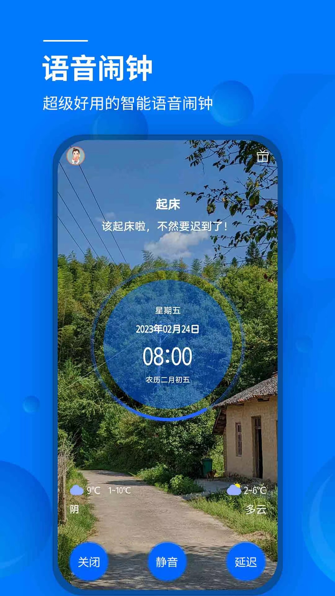 这个软件是一款为用户提供个性化声音的闹钟,提醒应用程序在提供各种提醒服务的同时,也为用户具备多种多元化的功能体验,包括日历和天气等等准时响,闹钟软件更便捷,准时高效,自定义闹钟更凸显用户的个性。可以随心添加语音闹铃个性更好用并且软件简单应用占用的内存也很小,可以选择不同的歌曲,当作闹钟铃声,让用户过好每一天不错过任何重要事项