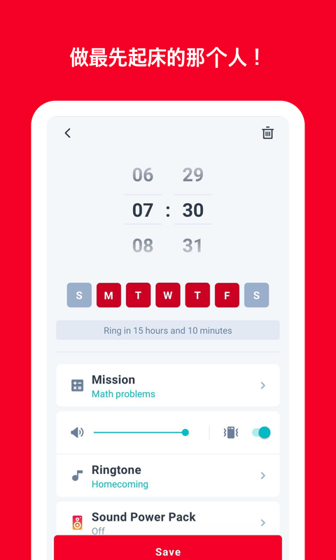 这个软件是一款智能的闹钟应用打破众多用户睡眠问题,为该软件的主要功能提供各种强制性的闹铃服务,解决数千万的睡眠问题,所有功能全部免费,可以选择震耳欲聋强大的闹铃铃声有许多高级功能,可以禁止在响铃时关闭手机有非常人性化的解铃,必须要通过特定的方式才可以解除铃声,让用户清醒的早起还有睡眠记录,可以改善习惯自然助眠