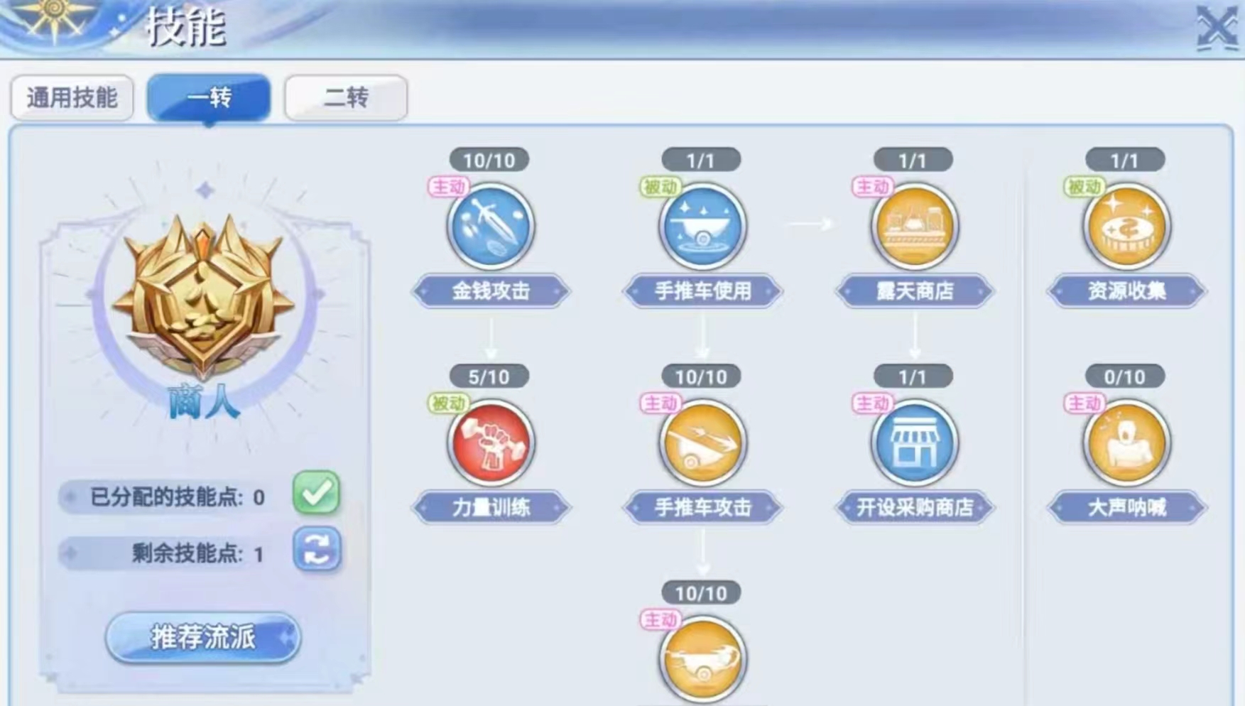 商人在游戏里算是一个比较特殊的职业吧,因为他不像其他的职业那么有战斗力,能够带给敌人强大的伤害,但是商人也有着自己独特的特点,在游戏里基本上所有的技能都是和交易有关的,比如说他有着其他职业所没有的寻矿技能,这个技能能够帮助玩家挖到不同的矿,这对于那些日常喜欢挖矿的玩家来说,确实是一个必备的职业。