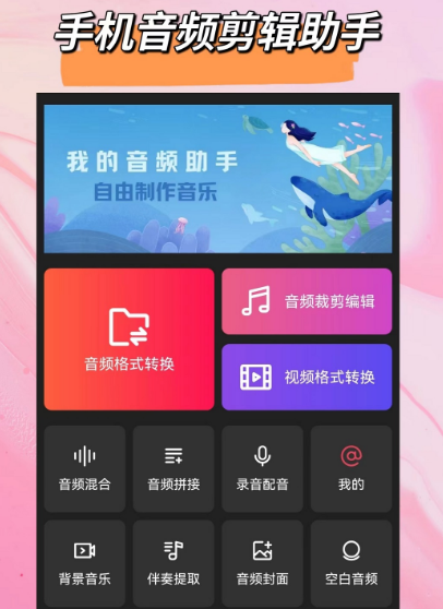 格式转换工具相当齐全,这是手机音频剪辑助手可自由创作,支持转换多种格式,也可直接提取短视频中的热门音乐。还有混合、提取、合并等多种模式。